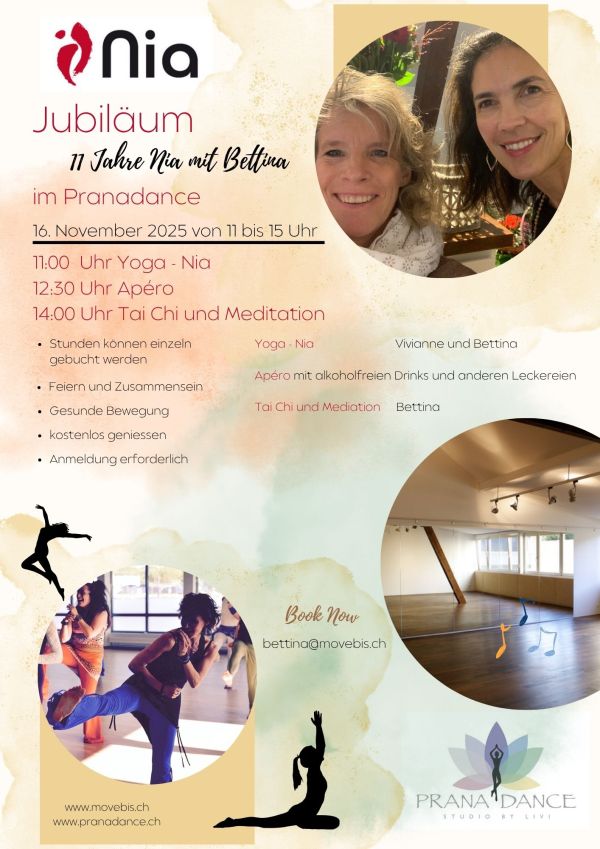 Vor 11 Jahren habe ich, nach den Herbstferien, im Pranadance Studio in Herrliberg-Feldmeilen, meine erste Nia Stunde gegeben!