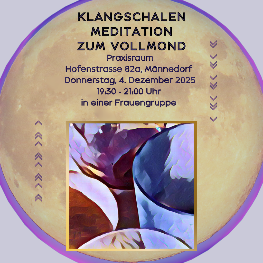 Feiere mit mir diesen kraftvollen Moment und lass uns zusammen auf eine Reise der Entspannung, Erneuerung und Heilung begeben, in einer kleinen Frauengruppe. 📌 Donnerstag, 4. Dezember 2025, 19:30 bis ca. 21:00 Uhr 📌 In meinen Praxisräumlichkeiten, Hofenstrasse 82A, Männedorf 📌 Ausgleich CHF 55.00